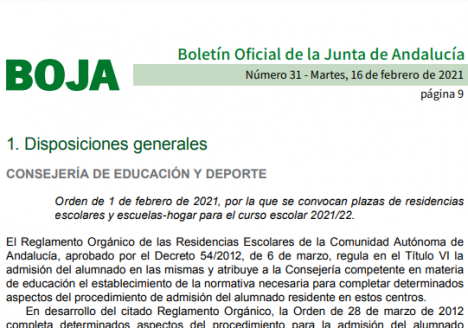 Ya se ha publicado la Orden de 1 de febrero de 2021, por la que se convocan plazas de residencias escolares y escuelas-hogar para el curso escolar 2021/22. Este año, marcado por…